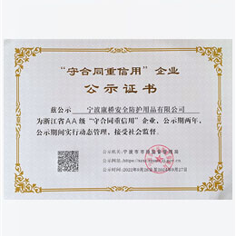 近日,寧波康橋安全防護(hù)用品公司獲評(píng)寧波市市級(jí)「誠(chéng)信民營(yíng)企業(yè)」稱(chēng)號(hào)。本次誠(chéng)信民營(yíng)企業(yè)評(píng)選,由寧波市精神文明建設(shè)指導(dǎo)委員會(huì)、寧波市市場(chǎng)監(jiān)督管理局、寧波市民營(yíng)企業(yè)協(xié)會(huì)聯(lián)合開(kāi)展評(píng)選認(rèn)定…...